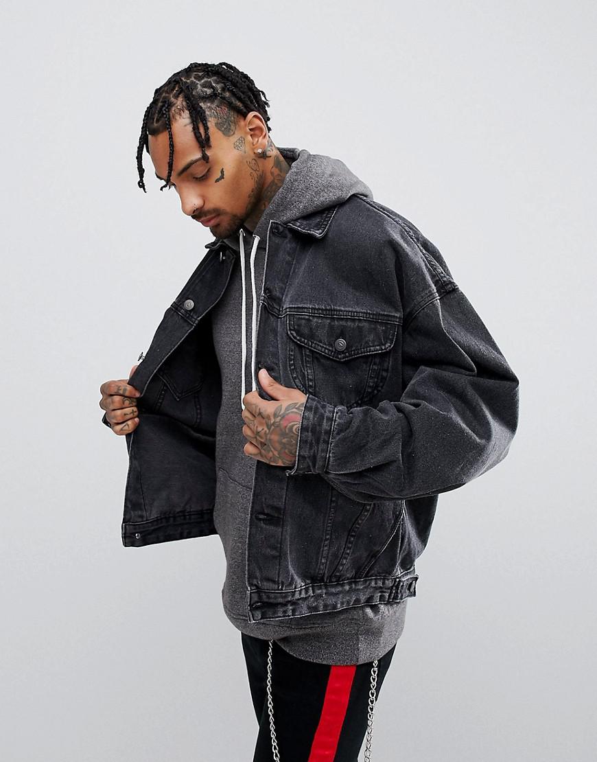 - Washed black oversized denim jacket shop