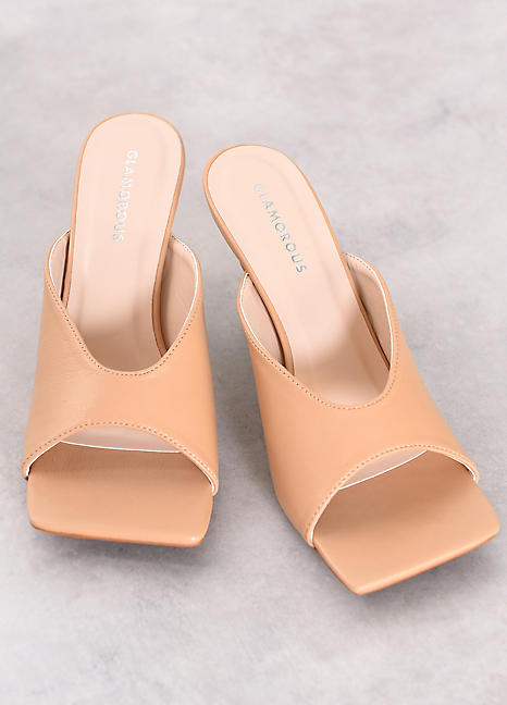 Tan square toe mules Clearance, Roddy X Tan Square Toe Heel Mules Clearance