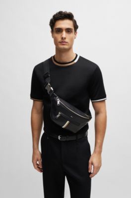 Hugo boss gürteltasche leder Clearance, BOSS - Gürteltasche aus Kunstleder mit Signature-Streifen - Schwarz Clearance