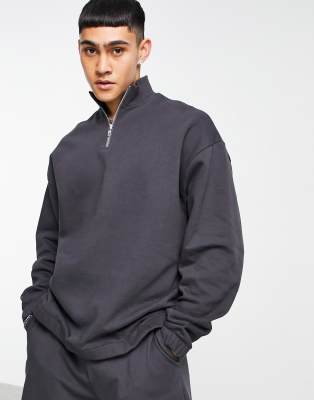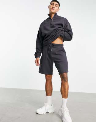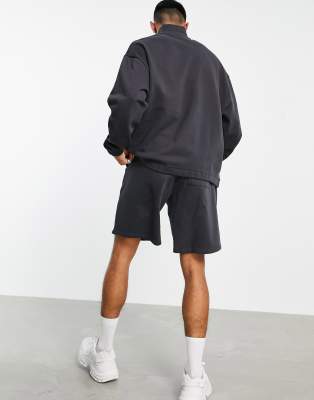Short zip sweatshirt Clearance, Men's ASOS Design Tracksuit with Oversized Half Zip Sweatshirt and Oversized Short in Washed Black Clearance