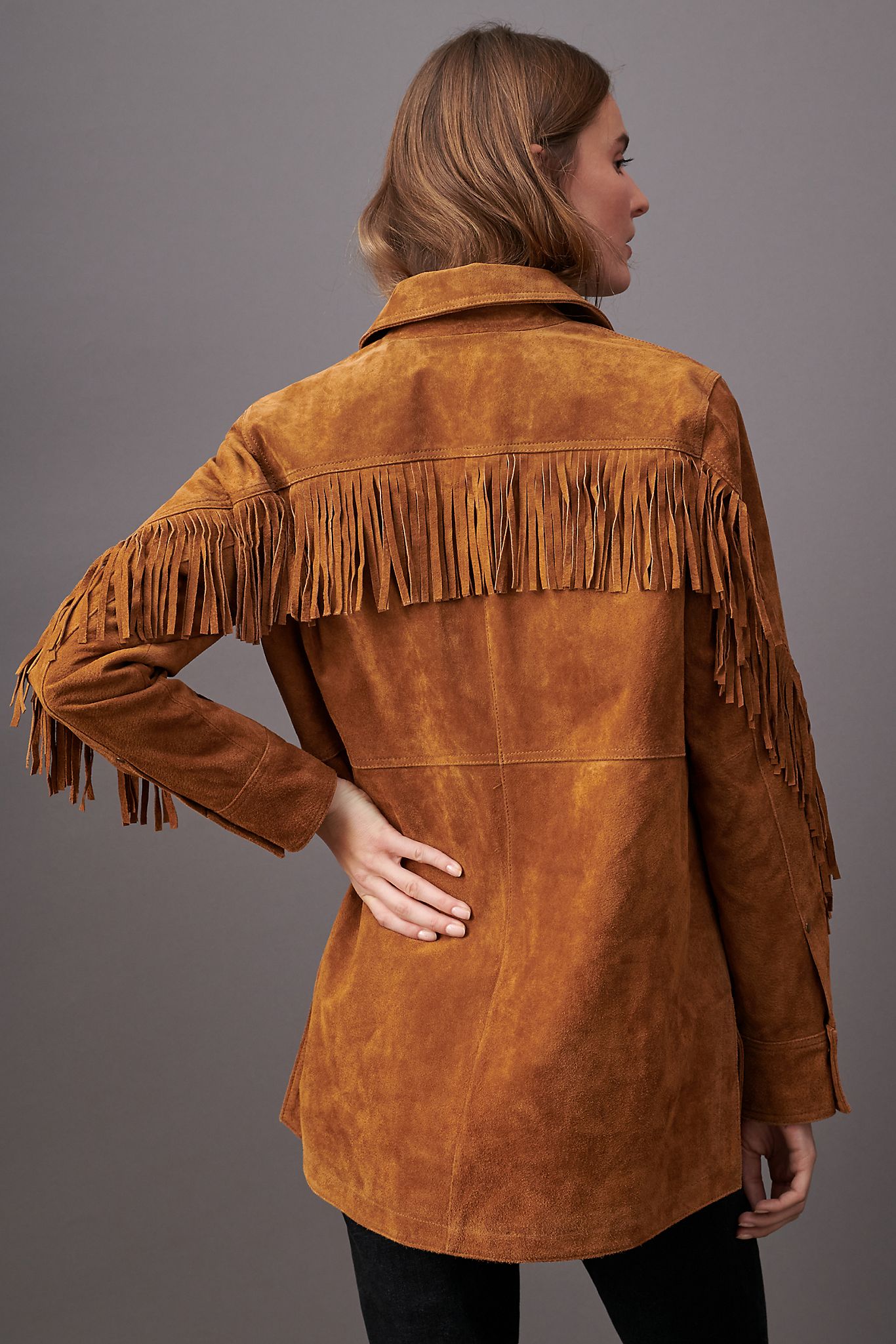 - Pilcro danae fringed suede jacket shop