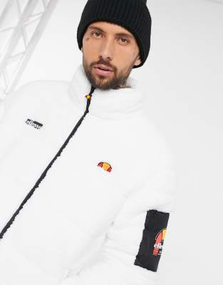 Ellesse sherpa puffer jacket in ecru Clearance