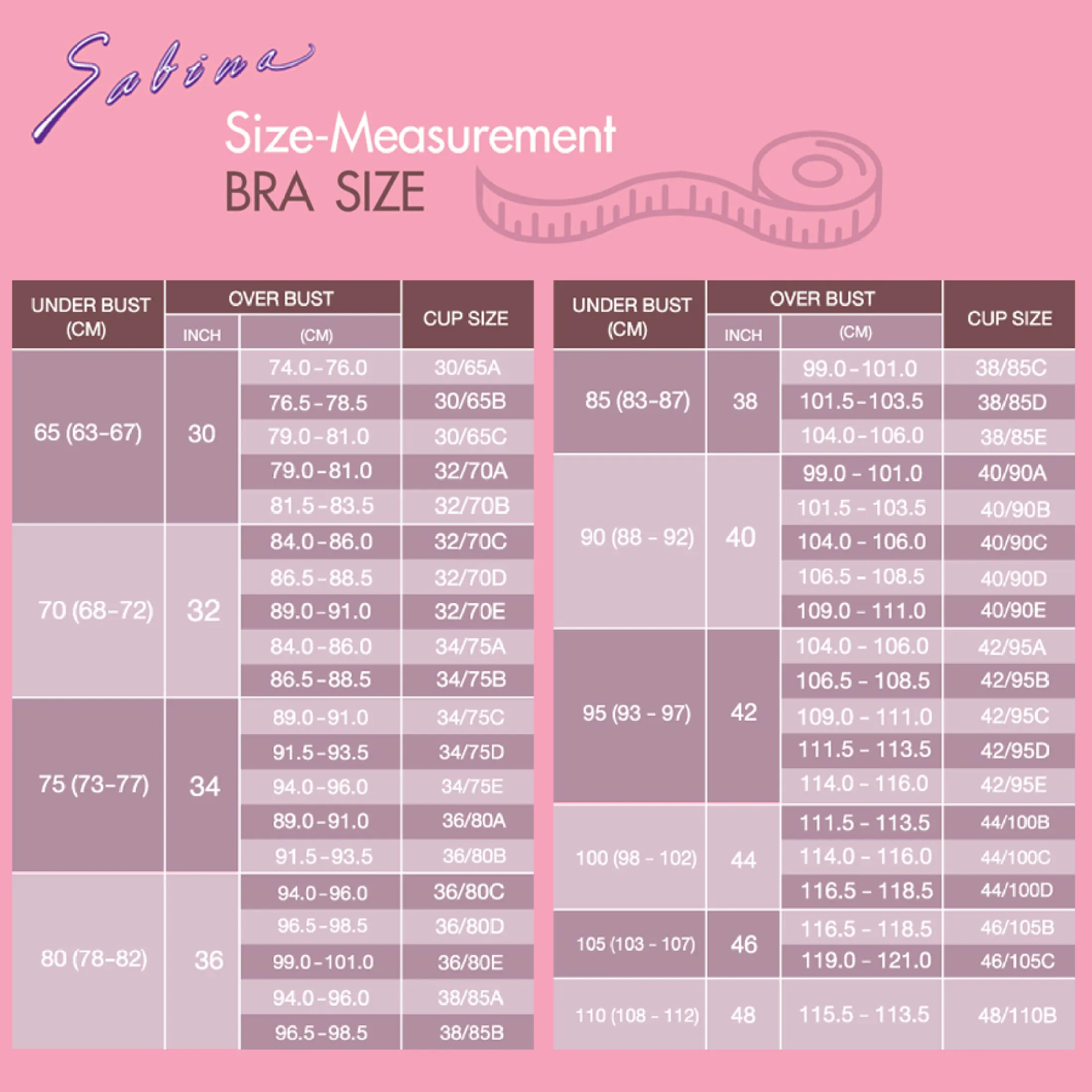 Sabina bra size chart Clearance