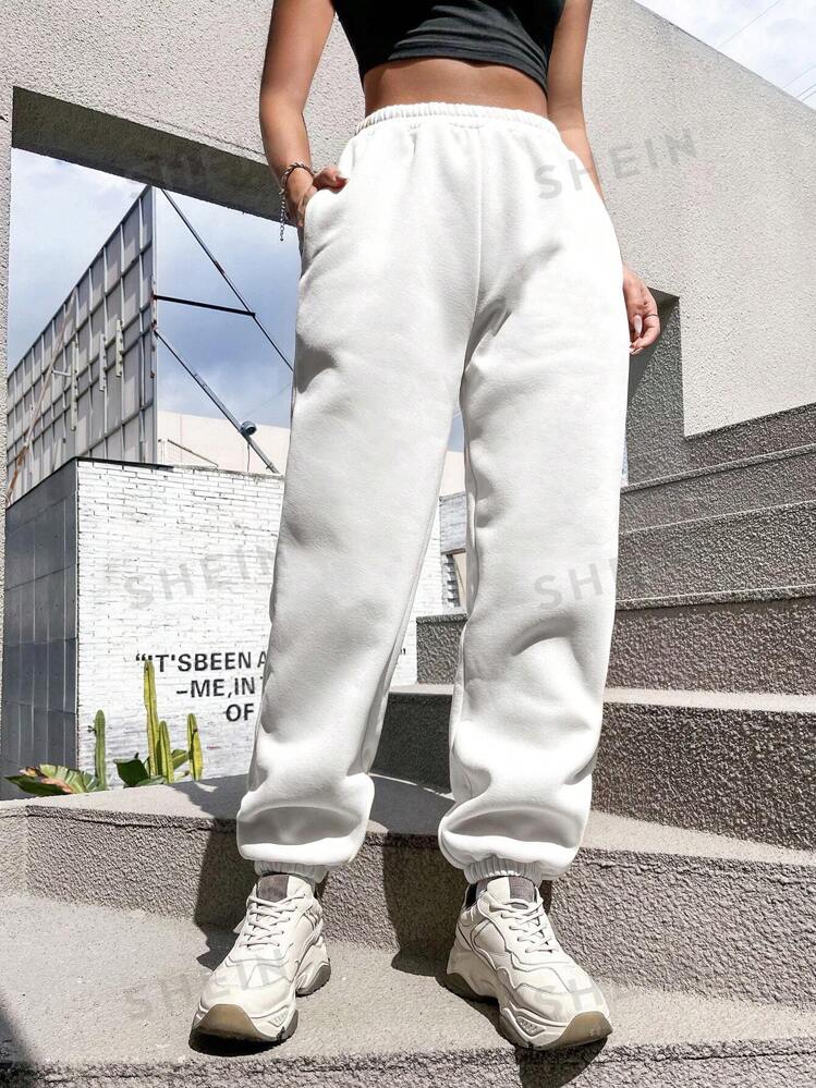 Weiße jogginghose shein Clearance, SHEIN MOOSTA Jogginghose mit Einfarbig schrägen Taschen, | aktuelle Trends, günstig kaufen | SHEIN Deutschland Clearance