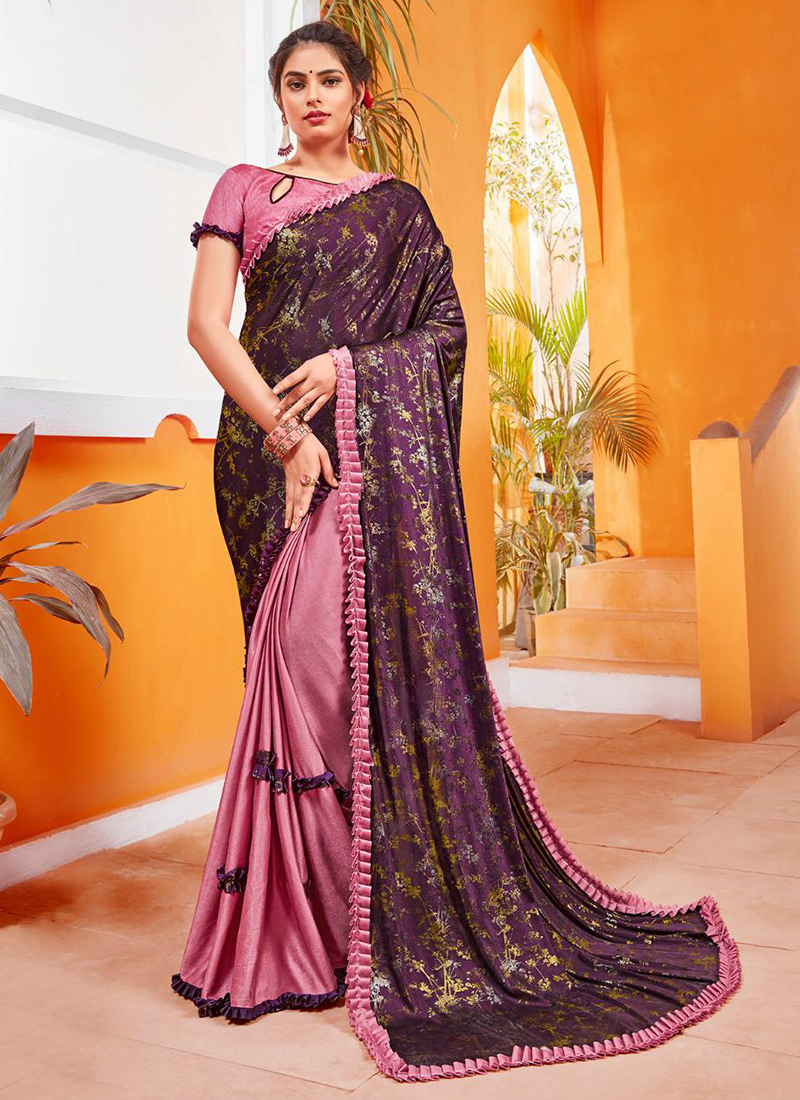 Ready frill sarees Clearance, Party Wear Latest Designer Lycra Frill Sarees Collection Catalog Clearance