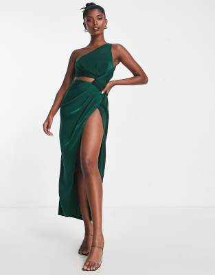Asos schöne kleider Clearance, ASOS DESIGN – Wadenlanges Kleid in Grün mit Knotendetail und Zierausschnitt Clearance