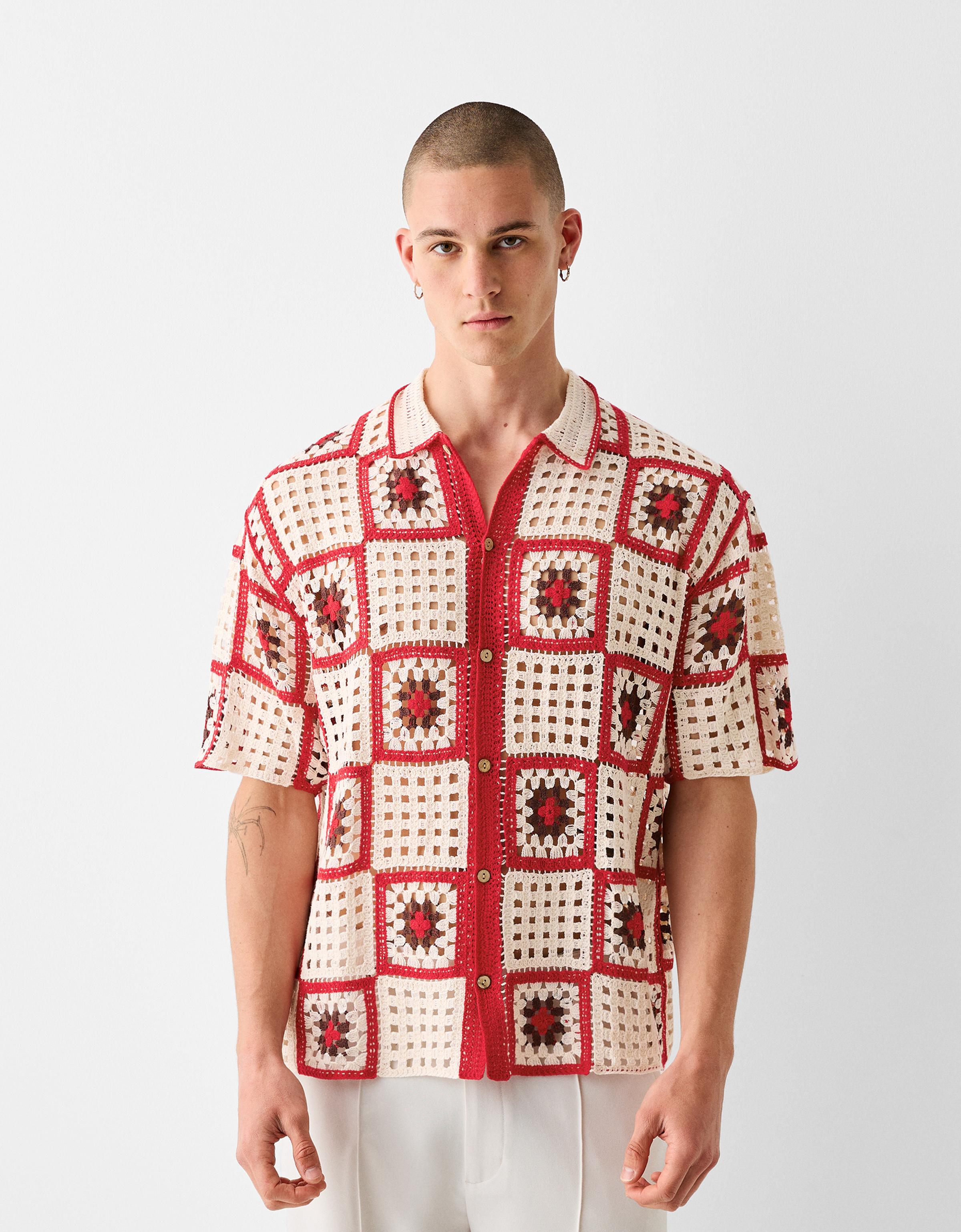 Gehäkeltes hemd herren Clearance, Kariertes Häkel-Hemd mit kurzen Ärmeln - Hemden - Herren | Bershka Clearance