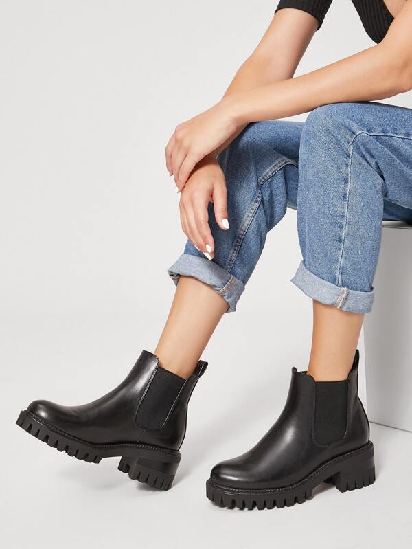 - Shopping Chelsea faux leather and block heel boots