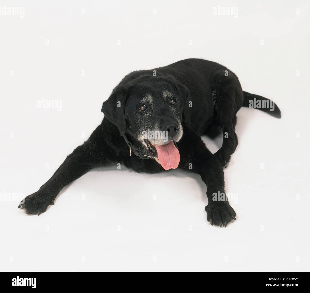 Old labrador panting Clearance, Old Black Labrador lying on front Clearance
