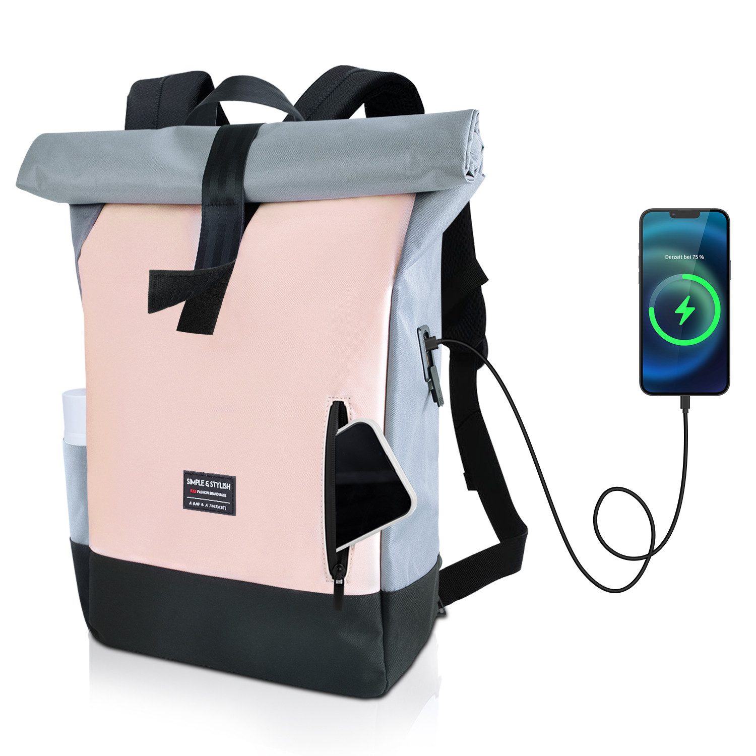 Otto rucksäcke damen Clearance, LARKSON Cityrucksack TAMMO, Rolltop Damen Herren, Laptop Fach (1-tlg), Flexible Größe, Wasserabweisend Clearance