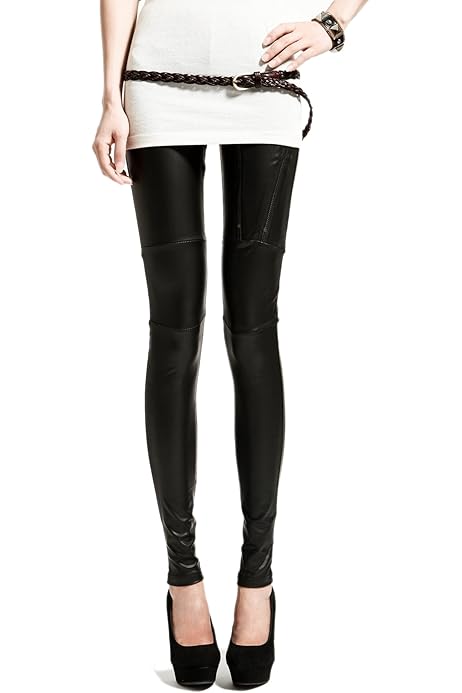 Leggings mit reißverschluss am bein Clearance, BE STYLED - Glanz Leggings Treggings mit Reißverschluss in Schwarz - Damen - l14a Clearance