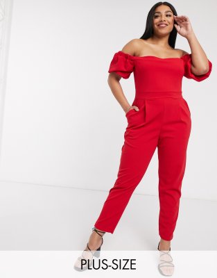 Asos jumpsuit rot Clearance, shoulder puff sleeve jumpsuit in red Clearance