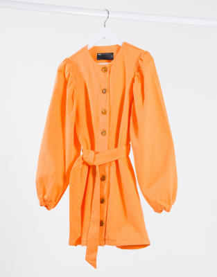 Asos orange puff sleeve dress Clearance, ASOS DESIGN denim orange puff sleeve Clearance