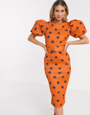 - Asos orange puff sleeve dress sale online