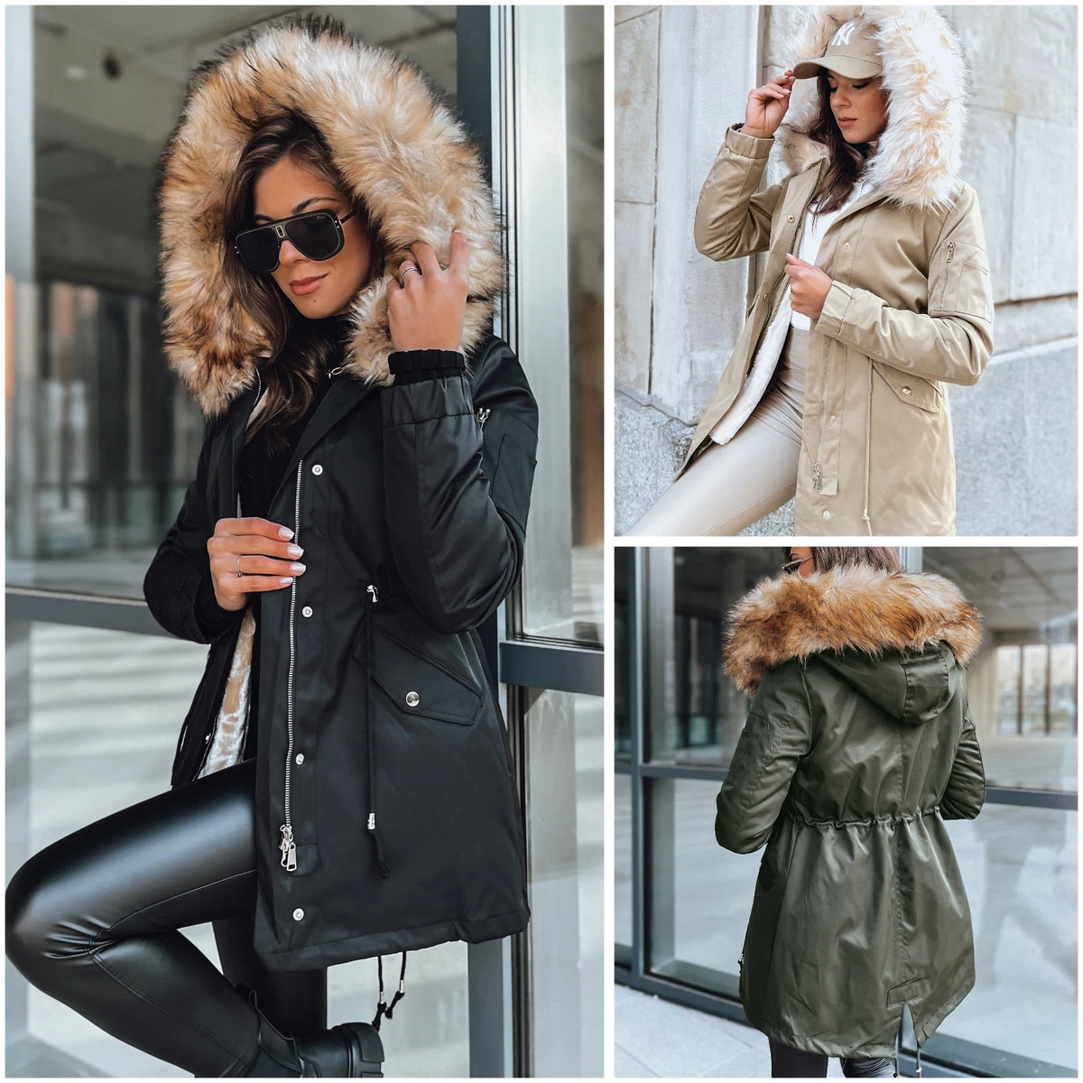 Parka wadenlang Clearance, Warme damen winter jacke parka lang mantel winterjacke fell kragen kapuze kaufen Clearance