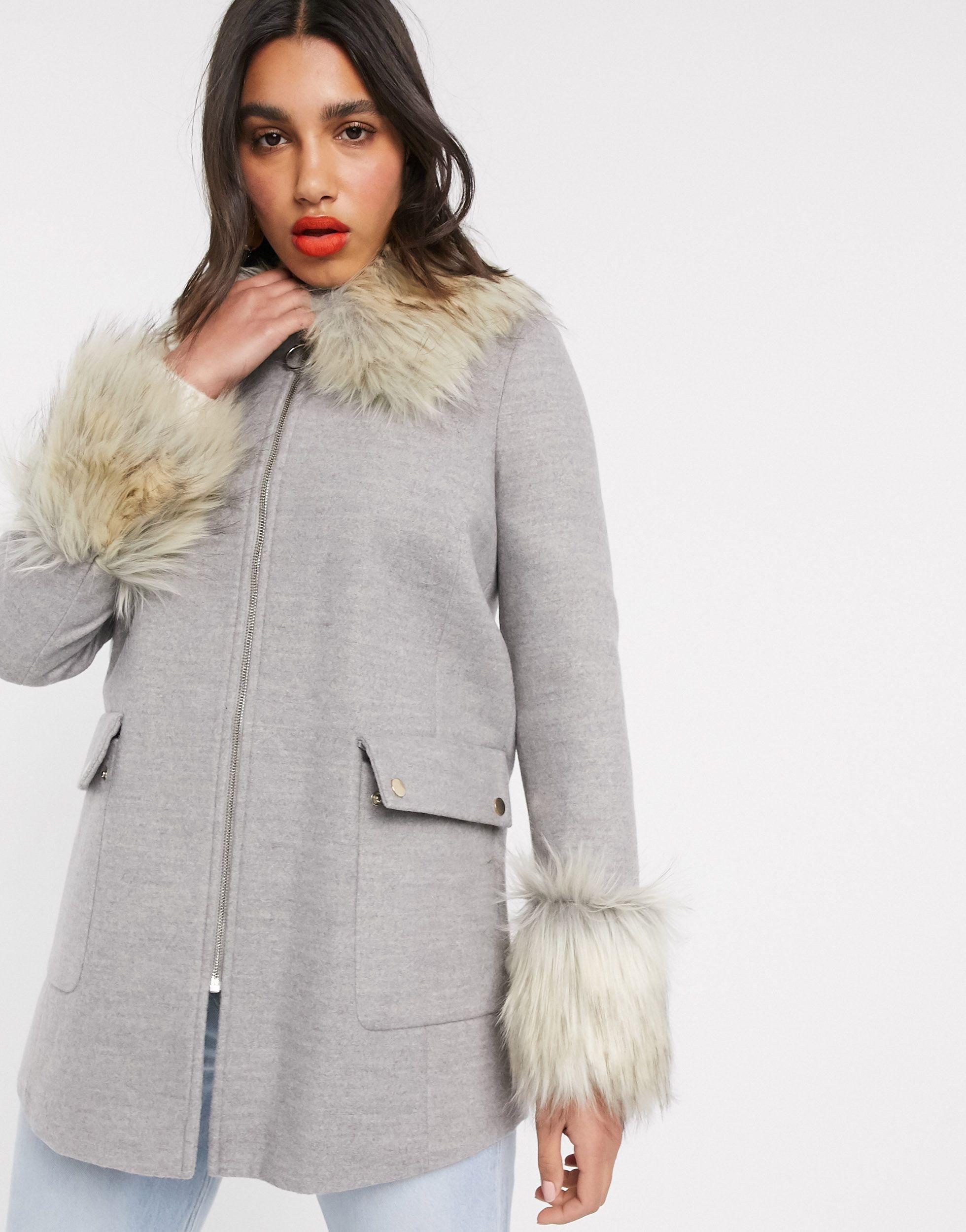 Miss selfridge duffle coat Clearance, Duffle Coat With Faux Fur Trim Hood Clearance