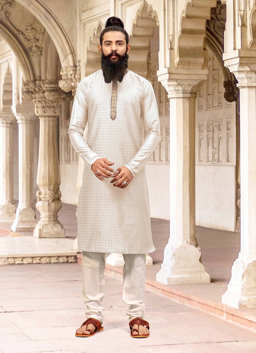 - White kurta pajama with turban combination clearance