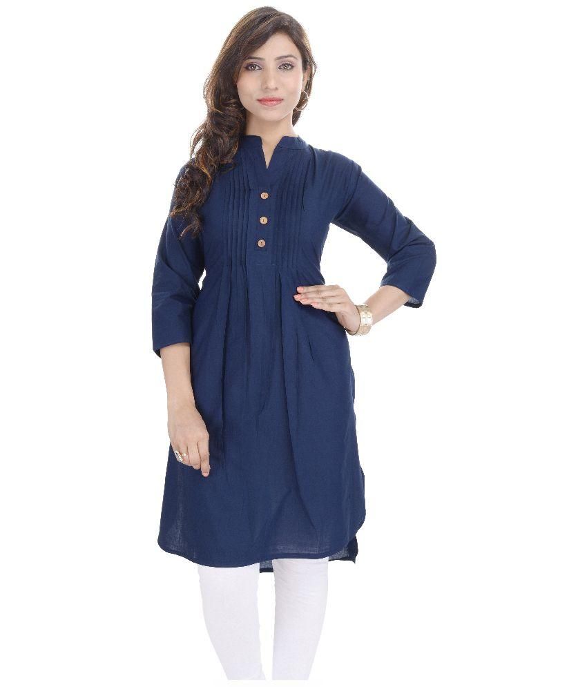 Shirt style kurti online Clearance, Desier Blue Cotton Shirt style Kurti Clearance