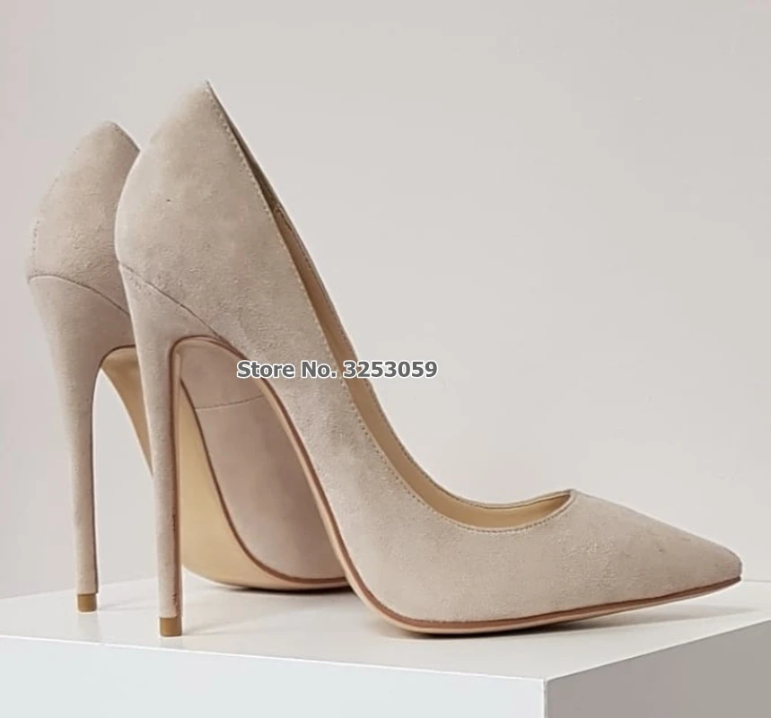 Nude suede high heels Clearance, Nude suede high heel pointy toe pumps Clearance