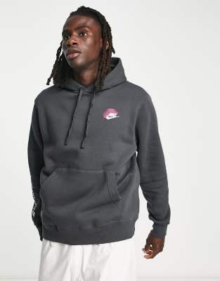 Nike pulli mit 2 nike zeichen Clearance, Nike – Club – Kapuzenpullover in dunklem Rauchgrau mit Doppel-Logo Clearance