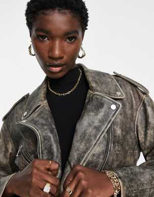 Bikerjacke grau wildleder Clearance, ASOS DESIGN – Verwaschene Bikerjacke aus hochwertigem echtem Leder in Grau Clearance