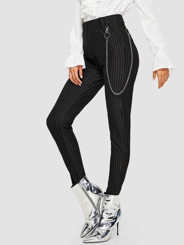 - Pinstripe pants with chain outlet