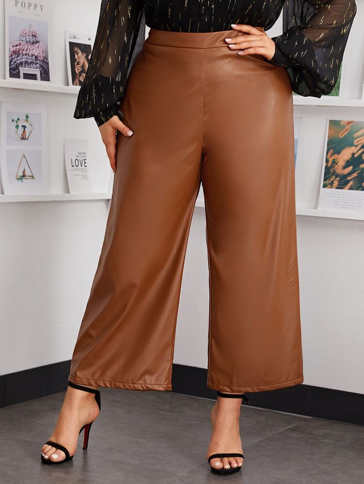 Shein plus size leather pants Clearance, SHEIN Plus Wide Leg Faux Leather Pants Clearance
