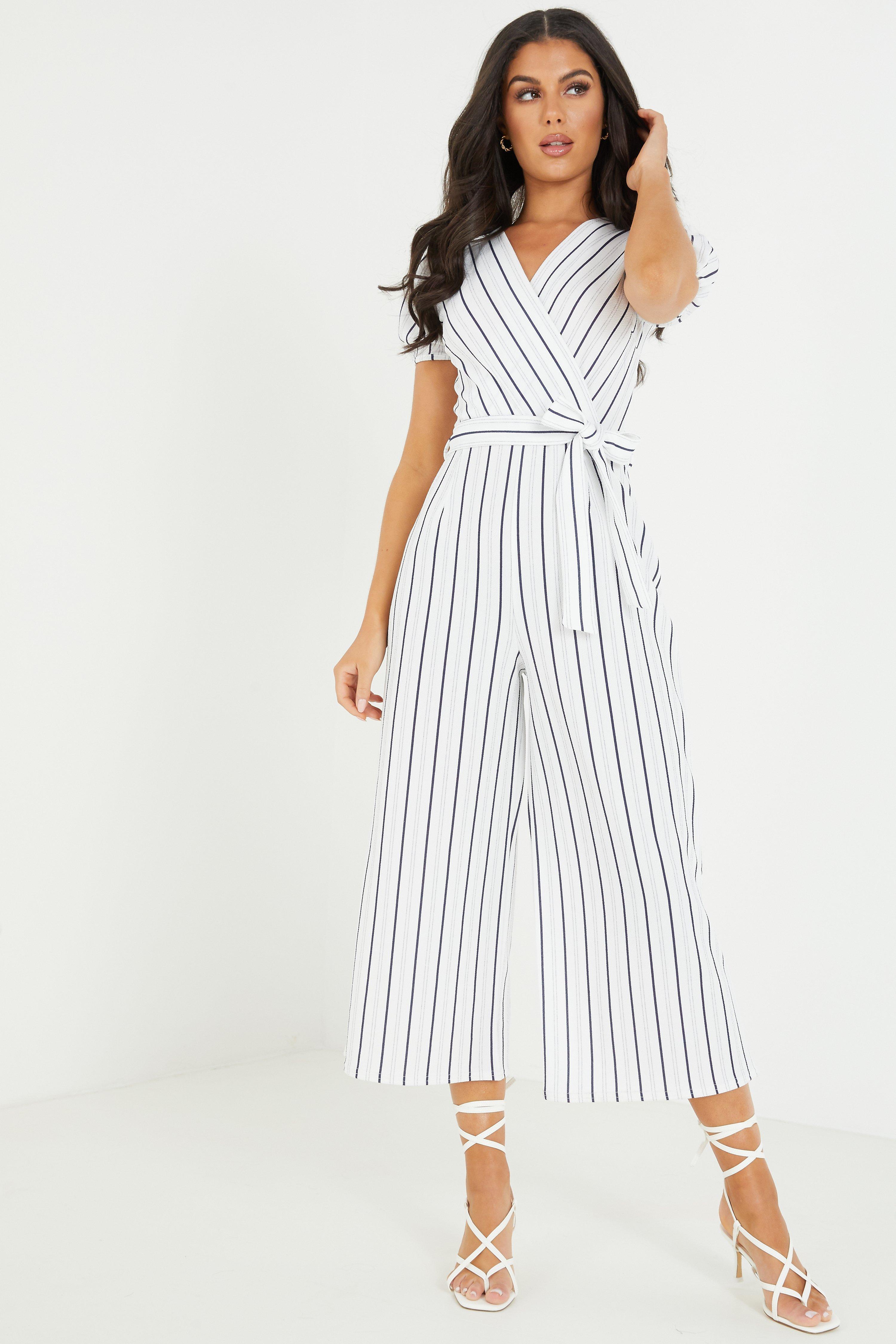 Quiz culotte jumpsuit Clearance, Striped Belted Culotte Jumpsuit Clearance