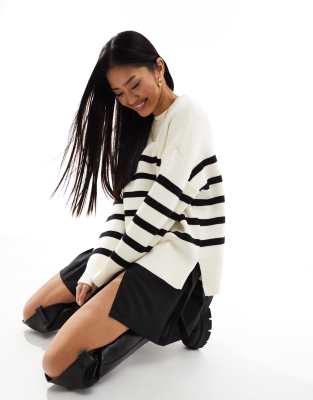 Langer gestreifter pulli Clearance, Pimkie – Langer, gestreifter Pullover in Creme und Schwarz Clearance