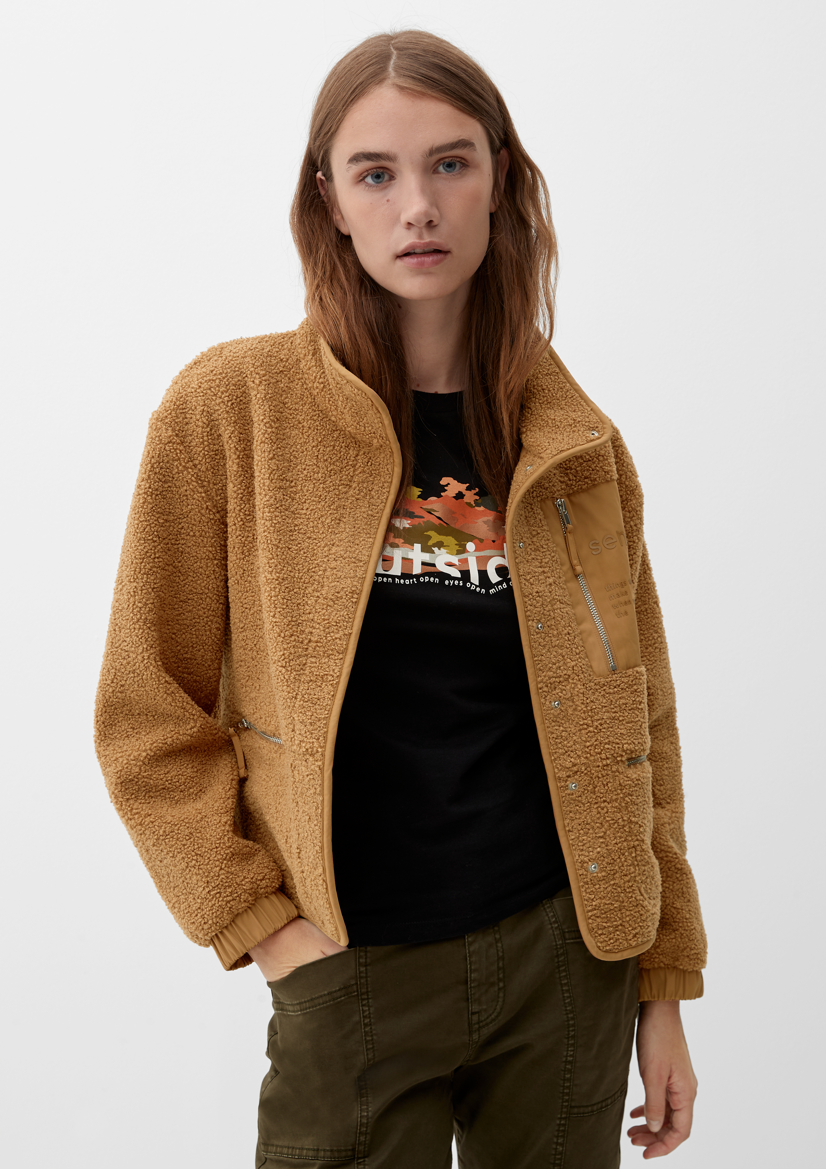 S oliver teddy jacke Clearance, Jacke aus Teddyplüsch - sandstein | s.Oliver Clearance