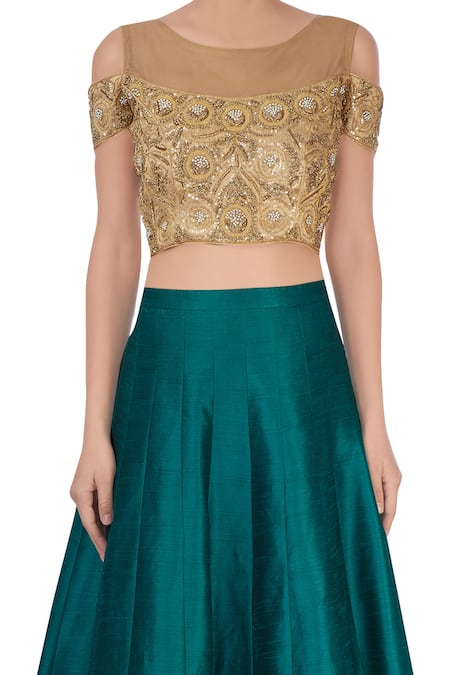 - Green lehenga with golden blouse shop