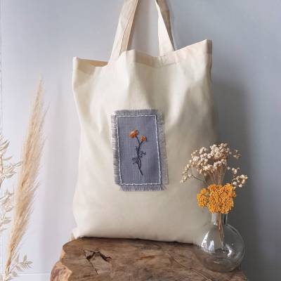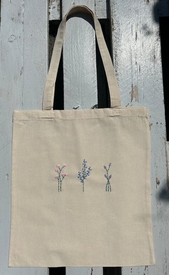 Bestickte jutebeutel Clearance, Entzückende bestickte Baumwolltasche / Jutebeutel • la fleur Clearance