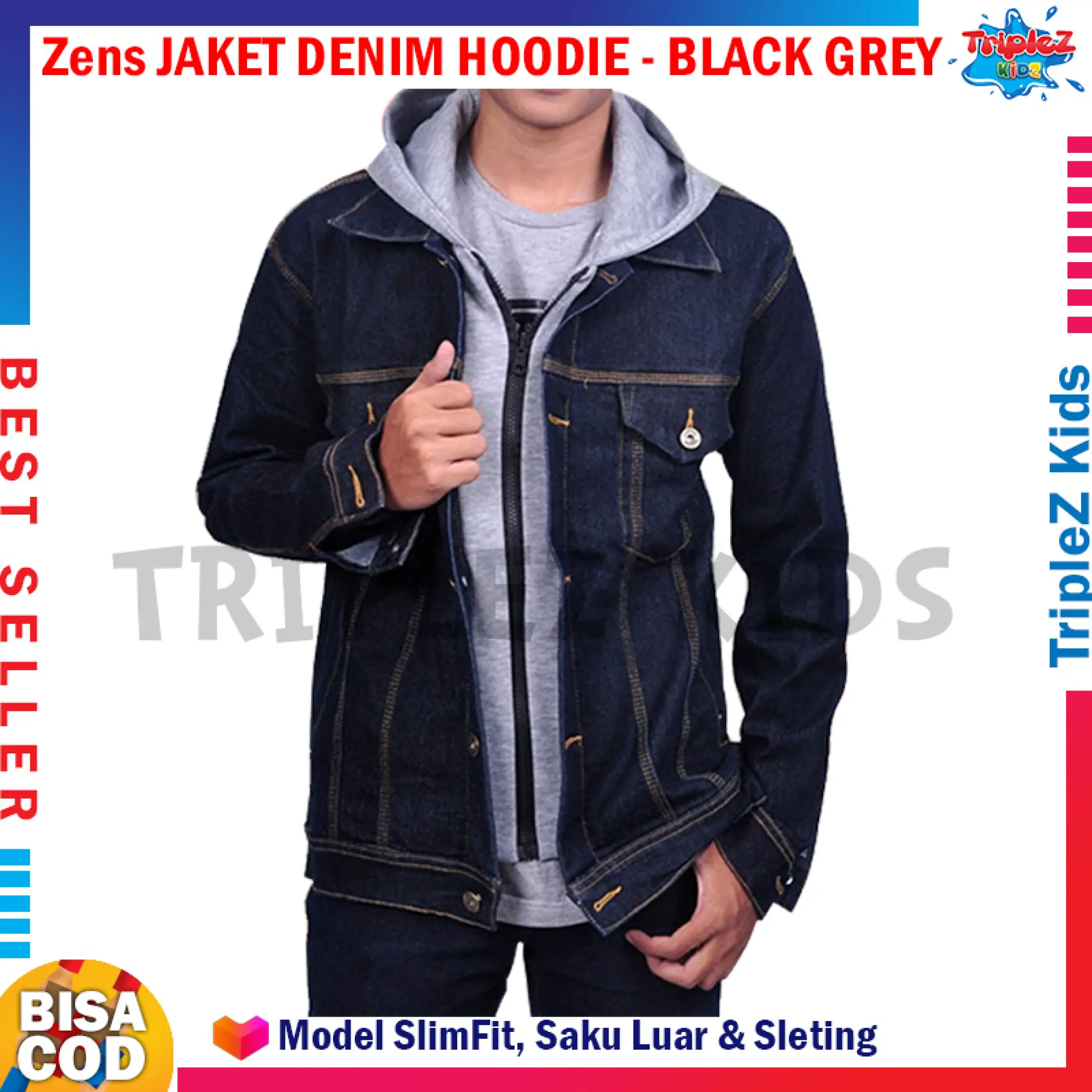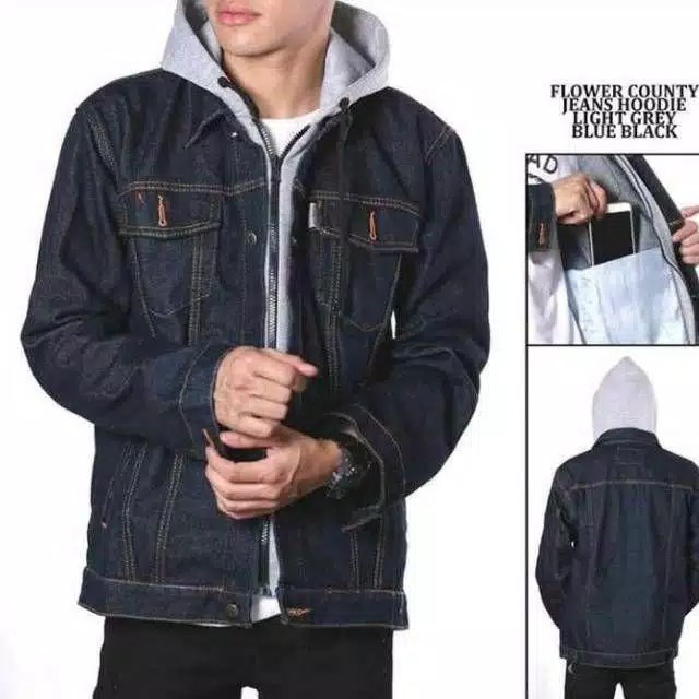 Jaket denim hoodie Clearance, Jaket Jeans Denim Hoodie Pria Clearance