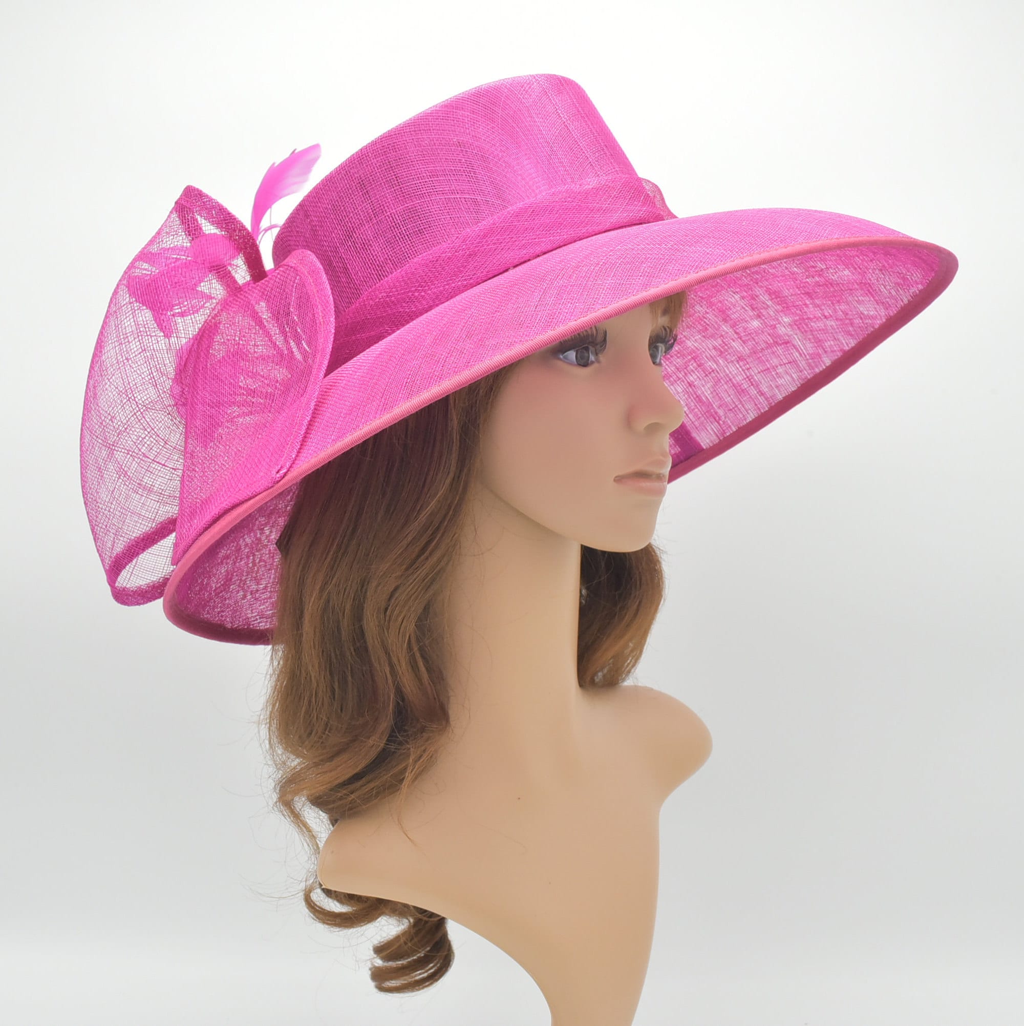 Fuschia wedding hat Clearance, Classic Sinamay Fuchsia Wedding Hat for Clearance