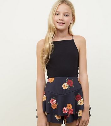 Skort new look Clearance, Black Rose Print Tiered Skort | New Look Clearance