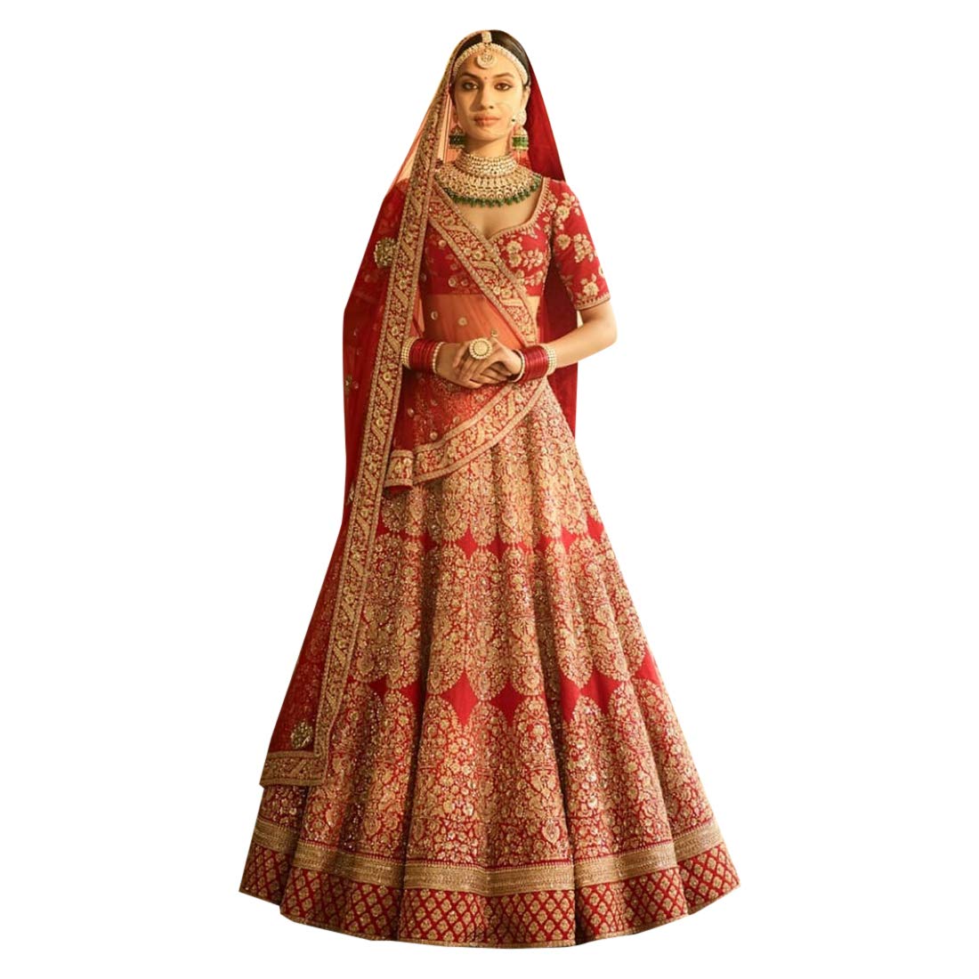 Ghagra 2 Clearance, Red Silk Heavy Bridal Handwork Indian Clearance