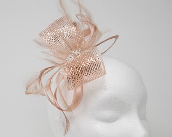 Rose gold fascinator clip Clearance, Metallic rose gold clip fascinator with Clearance