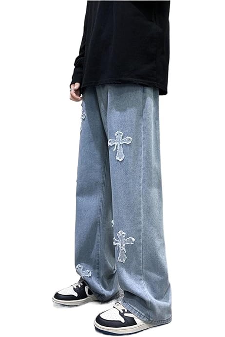 Männer hosen 90er Clearance, Yokbeer Baggy Jeans Herren Y2k mit Kreuze Print Hip Hop Baggy Cargo Jeans Pants Breite Hose Jeanshose Hosen Freizeithose für Jungen Skateboard Hose (Color : Schwarz, Size : S) : Amazon.de: Fashion Clearance