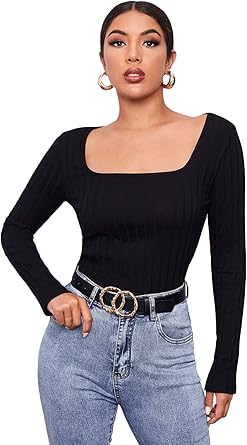 - Cheap Womens square neck long sleeve top