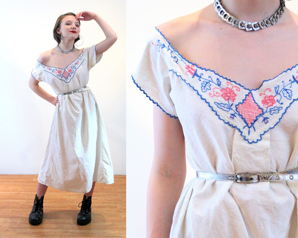 White muslin nightgown Clearance, Antique Muslin Nightgown XS Victorian Embroidered Bohemian | Etsy Clearance