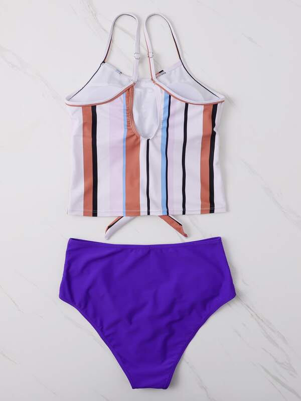 Striped knot hem with ruched bikini Clearance, Striped Knot Hem Top With Ruched Bikini Clearance