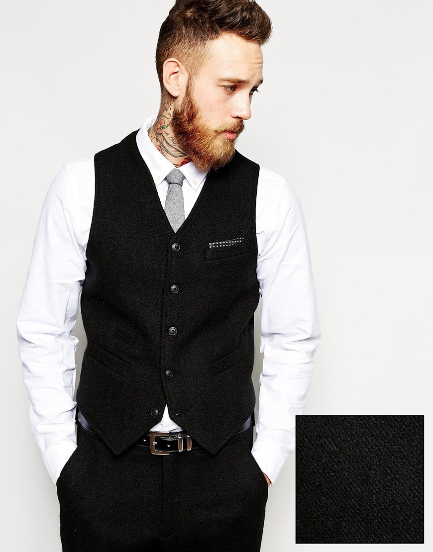 Black tweed waistcoat Clearance, Black Herringbone Tweed Waistcoat Clearance