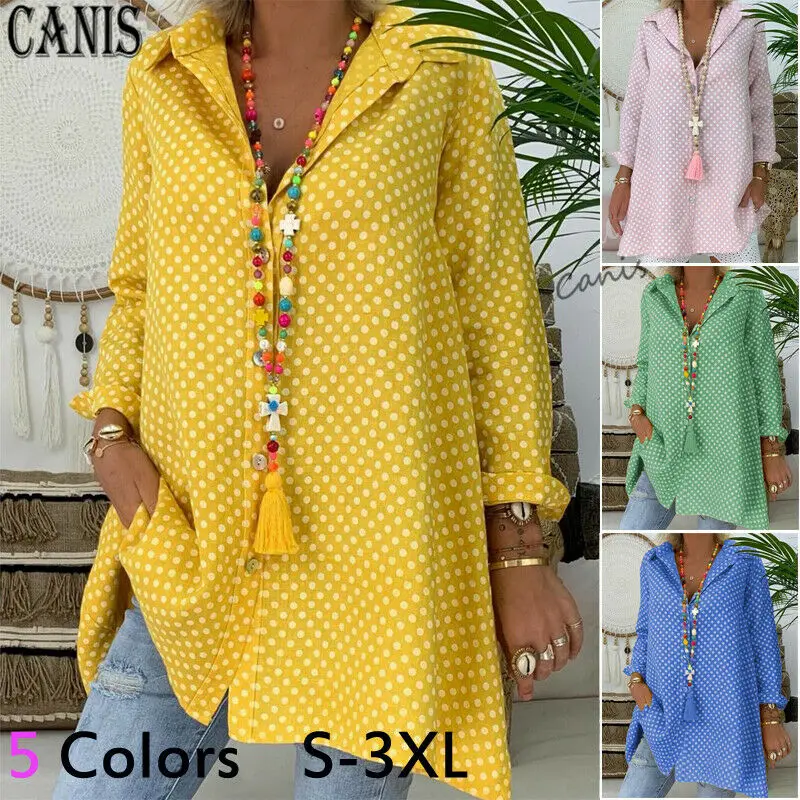Ladies yellow summer tops Clearance, Fashion Polka Dot Printed Shirts Women Clearance