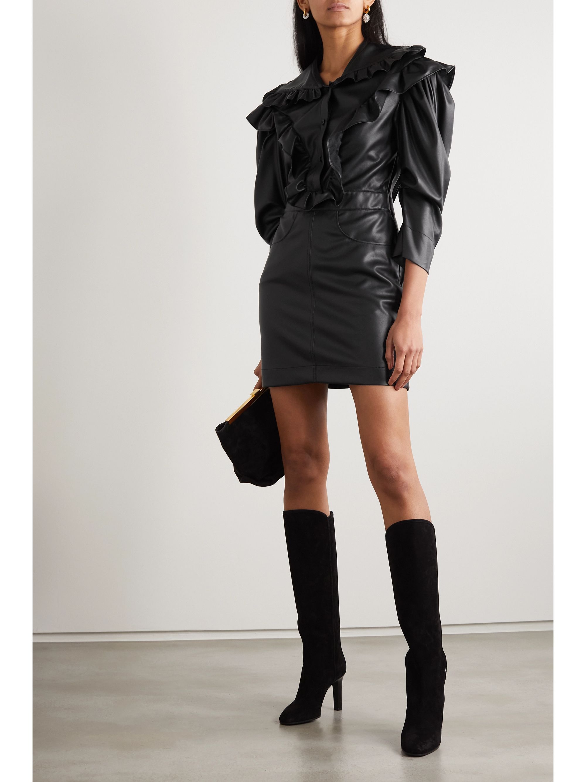- Black faux leather mini dress