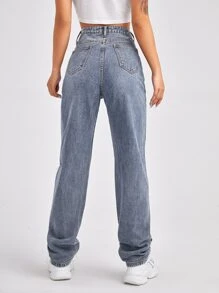 High waist slant pocket ripped straight jeans Clearance