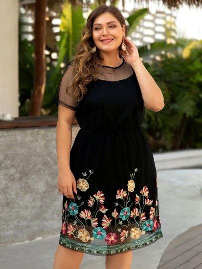 - Shopping Plus size mesh overlay dress