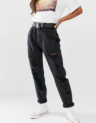 - High waisted black ripped mom jeans shop