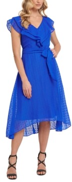 Dkny ruffle dress Clearance, DKNY Womens Navy Ruffled V-neck Clearance
