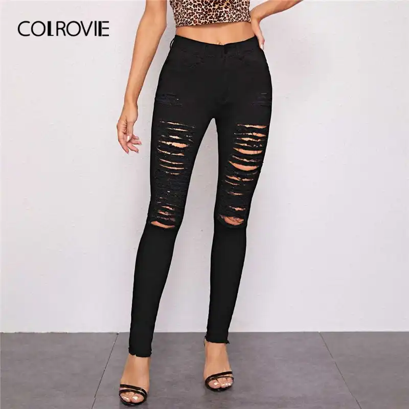 - Shopping High waisted black distressed skinny jeans
