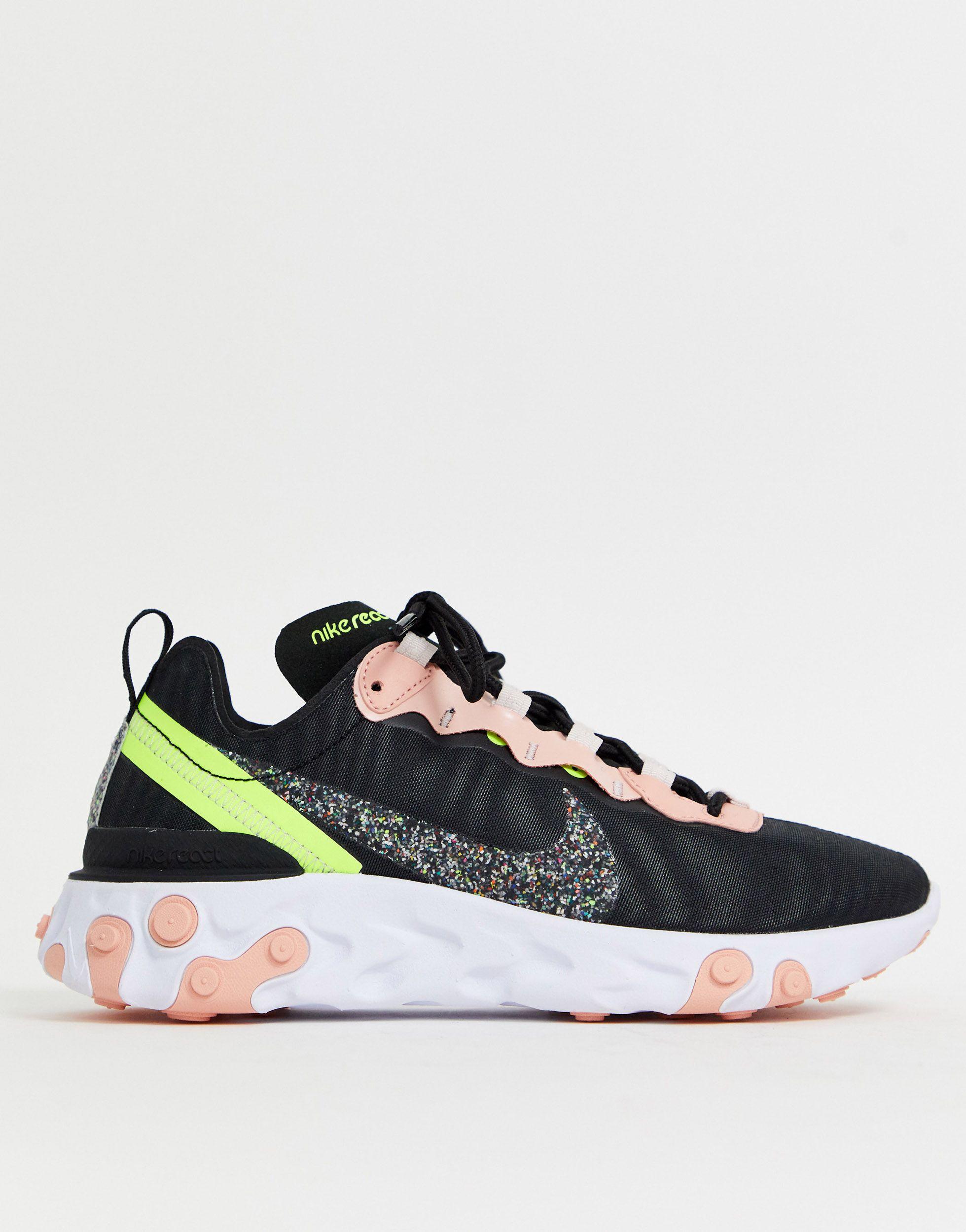 - Shopping Nike black and pink regrind react element 55 sneakers